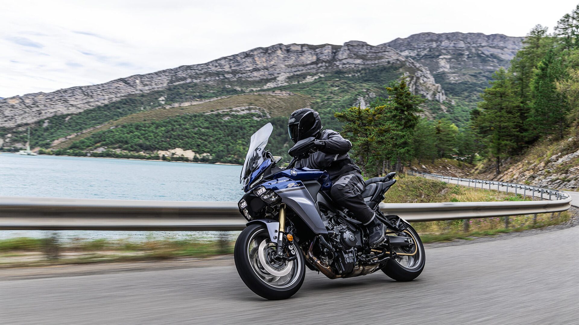 The TRACER 9 GT+'s Uni ed Brake System incorporates a hydraulic unit to automatically distribute braking force to both wheels adjusting the brake bias to optimise stopping power and controllability of the machine. In conjunction the Vehicle Hold Control intuitively applies rear brake pressure when stopped to allow seamless take-offs when on an incline or slope.