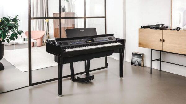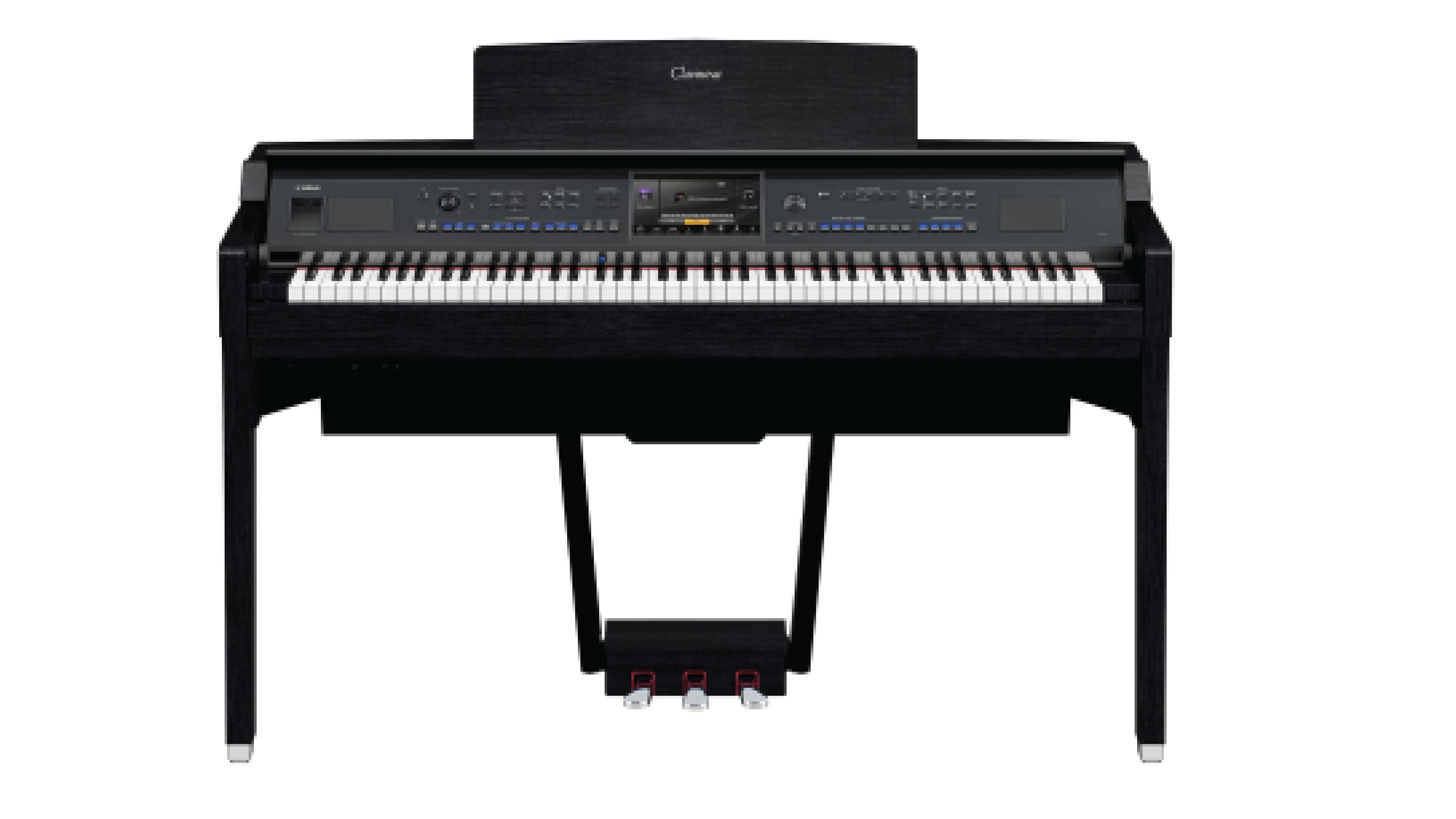 Yamaha CFX and Bösendorfer Imperial piano samples, Yamaha CFX and Bösendorfer binaural sampling / VRM (Virtual Resonance Modelling) / Grand Expression Modelling / GrandTouch™ Keyboard with counterweights, 88-key Linear Graded Hammers / GrandTouch™ Pedals with GP Response Damper / 675 Styles / 1,605 Voices + 58 Drum/SFX Kits + 480 XG Voices / 413 Songs / (40 W + 30 W + 20 W) × 2 + 80 W amplifiers / Grand Acoustic Imaging / (16 cm + 5 cm + 2.5 cm (dome)) × 2 + 20 cm speaker system, Spruce Cone Speaker, Twisted Flare Port / Multi-track MIDI recording (SMF format 0) / USB Audio Recorder (Playback/Recording - WAV, MP3) / TFT colour LCD (touch screen), 9.0 inch 800 x 480 dots / Smart Pianist app / Rec'n'Share app connectivity / Built-in Bluetooth® audio