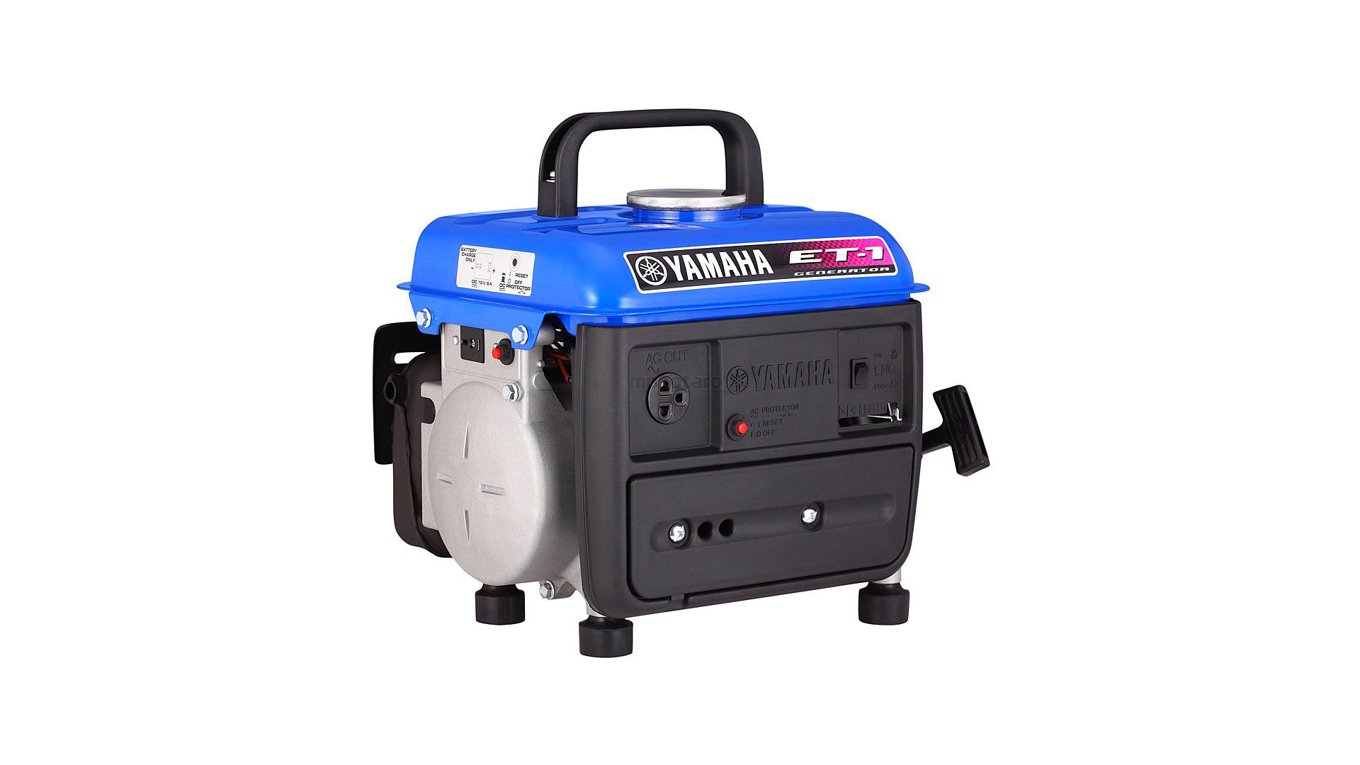 Portable, brushless, AC generator with a maximum output of 780 watts. Features include a 12 Volt DC output. Best suited for running lights and battery charging. ||| General: Type: Brushless AC Generator / Single Phase, Rated Voltage: 120, Frequency: 60 Hz, Rated Output: 0.8 kVa, Maximum Output: 0.96 kVa, DC Output: 12V/8.0A, L x W x H: 367 x 312 x 375, Dry Weight: 19 kg, Fuel Tank Capacity: 4 Litres, Operating Hours: 61 dbA/7m | Engine Specs: Engine Type: 2-stroke reed valve pressure air-cooled 63CM3, Starting System: Recoil *1 ||| 2-stroke reed valve engine: Compact size & simple mechanism. | Brushless generator: Maintainance free. | Maintainance free.: Fuseless type to protect the circuit against overcurrent. | DC output capability: Convenient for battery charging. | Carrying Handle: Easy to carry.