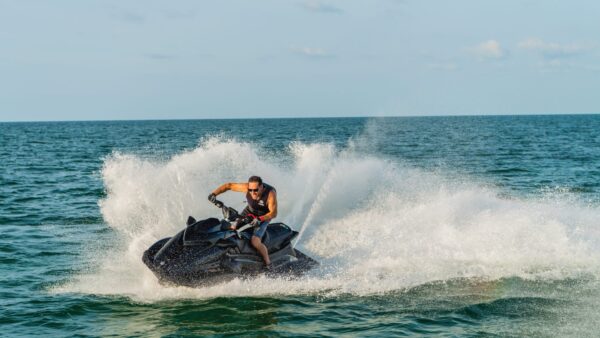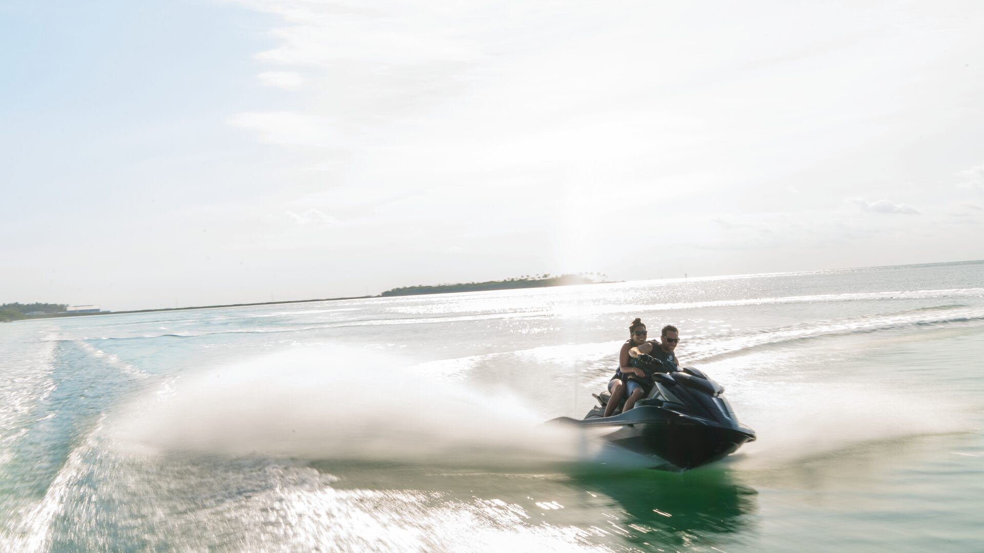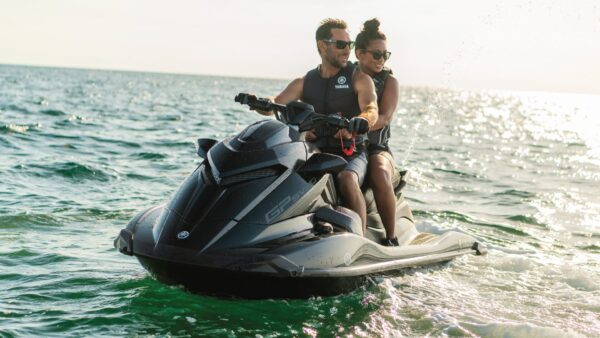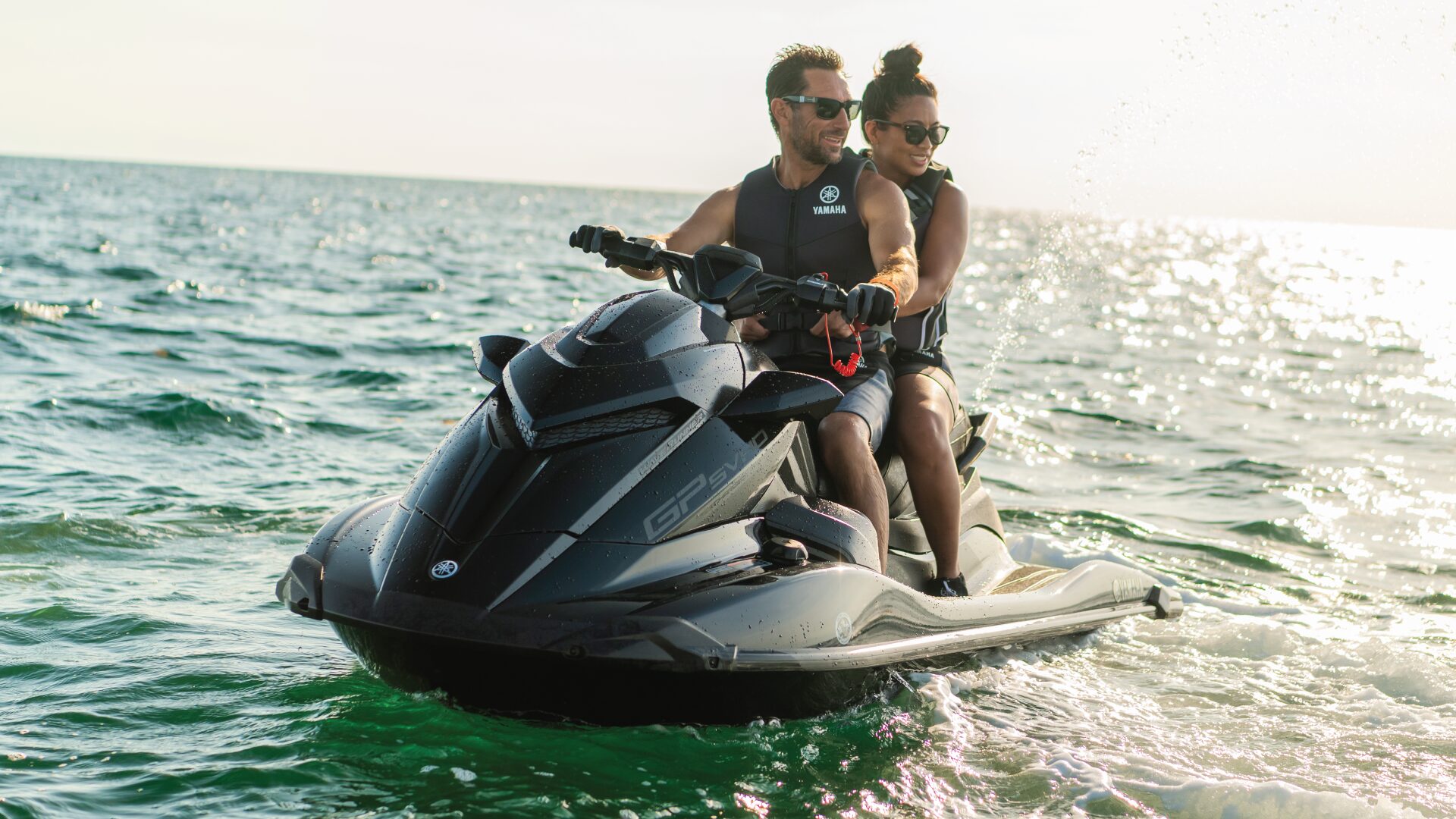 The GP SVHO will appeal to water sports fans as well as speed enthusiasts, with its comfortable three-person seat, large integral mirrors, an extended rear platform with a large, soft-touch re-boarding step, and a strong, practical towing hook. Comfortable, slip-resistant Hydro-Turf mats are a pleasure to step onto after swimming.